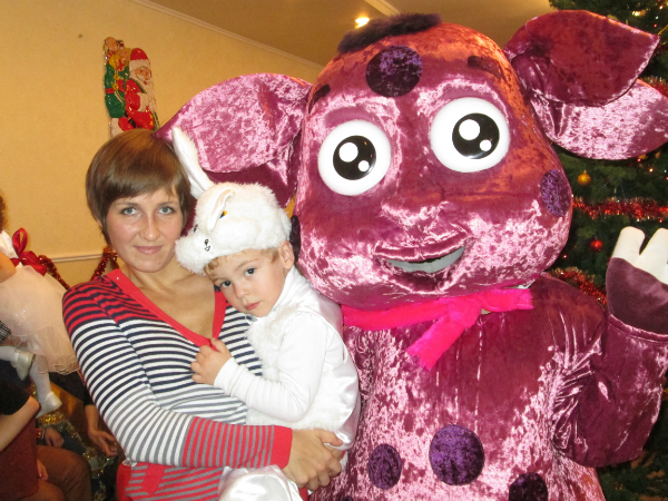 Ходили к бабушке на работу. Денька был зайчиком. Пашке костюм был не нужен, он накануне проехался носом по ковру, так что вполне мог играть Деда Мороза. Денис сначала орал и не хотел переодеваться. Еле уговорили. Потом сидел букой на руках. Во второй половине утренника ожил. Внимательно следил за детьми, требовал подарки. Обзавелся там несколькими машинками и для Паши взял пару пищалок, так как Пашенька благополучно проспал почти весь утренник. Деда Мороза не боялся, пошел к нему на руки. Еще там были Лунтик и Нюша из Смешариков. Но мой ребенок этих персонажей не знает, поэтому обозвал Нюшу свиньей, а для Лунтика вообще не нашел определения. В конце был сладкий стол. Денька там груш объелся, а больше злая мама ничего не дала, да он и не требовал)