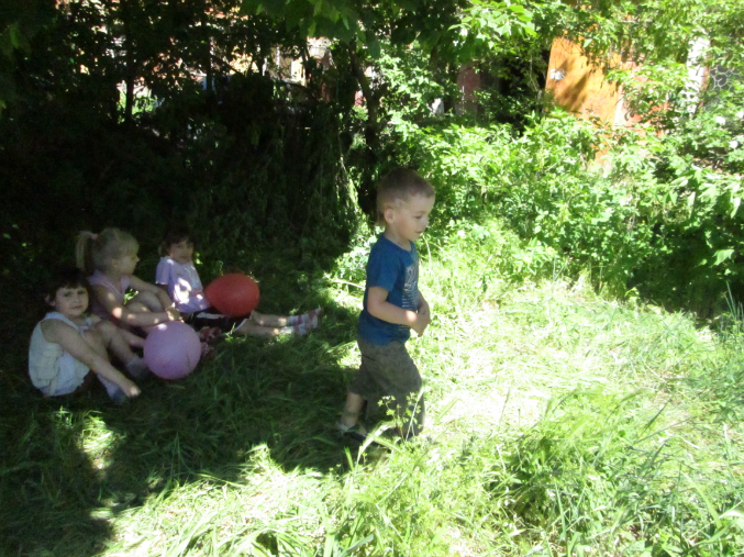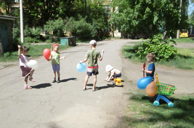 После Денькиного ДР осталось куча шариков. Периодически, по мере спускания их с потолка, выносим шарики на улицу.