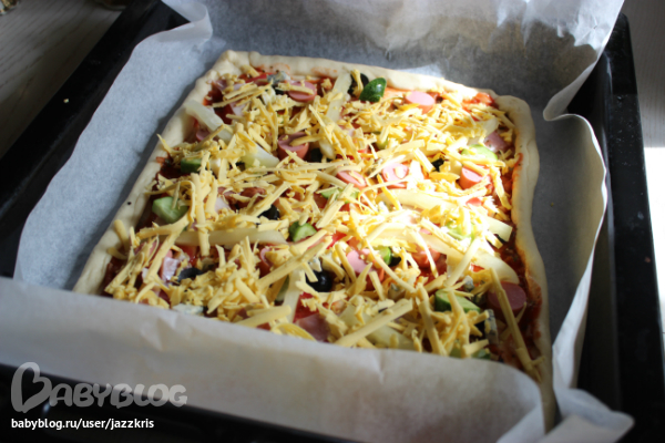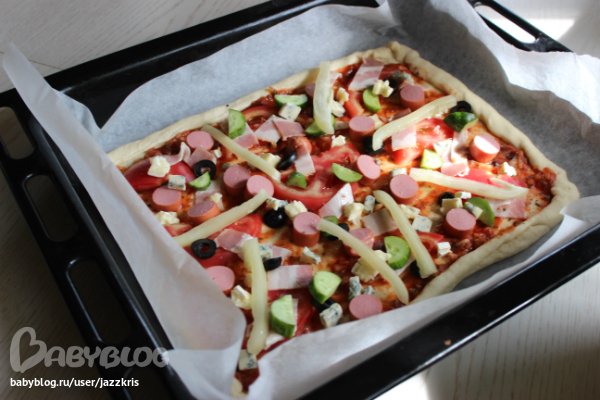 Замесите тесто и дайте ему подойти минут 15, потом осадите и еще дайте подойти. У кого есть хлебопечка, еще лучше. Засыпаем все в нее и ставим на режим ТЕСТО/ПИЦЦА - у кого какой.