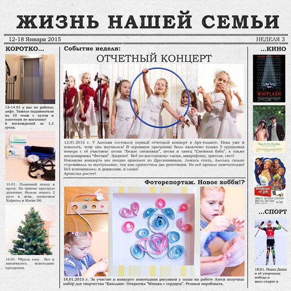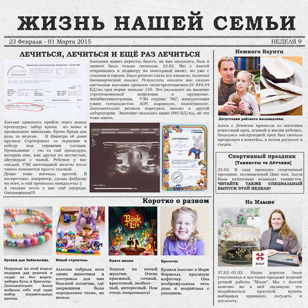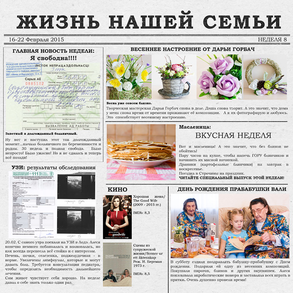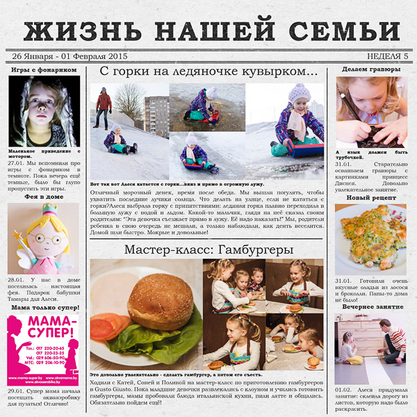 Итак, представляю Вашему вниманию мой проект-газету "Жизнь нашей семья", неделя 1 и Неделя 2, включая спецвыпуск "Друскининкай 2015".