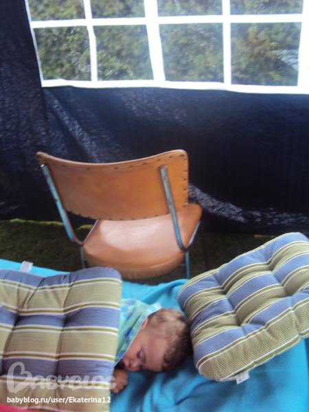 Малыш спит на улице - в павильоне на раскладушке)