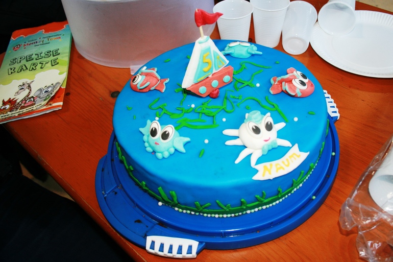 Началось все с торта на день рождения сына - мой первый торт с мастикой. Внутри шоколадный бисквит, пропитка чаем и крем из масла со сгущенкой. Морских зверюшек лепили вместе с именинником: