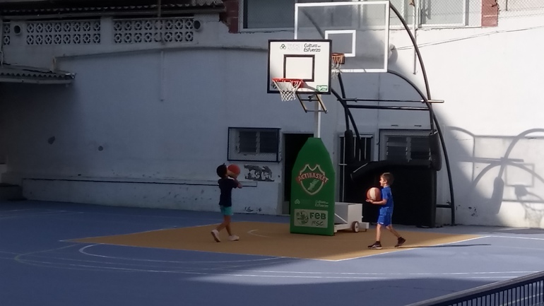 Развитие НаумаУ нас идут школьные будни, правда пока с раскачкой - испанские школы сентябрь и июнь работают не целый день, а только до обеда. Так дети без стресса переходят от летнего безделья к полноценному учебному дню с 9 утра до 16:30 вечера.Моя подруга-испанка, мама одноклассника сына продложила нам сходить на пробный урок баскетбола для детей от 6 лет. Мы с удовольствием согласились.