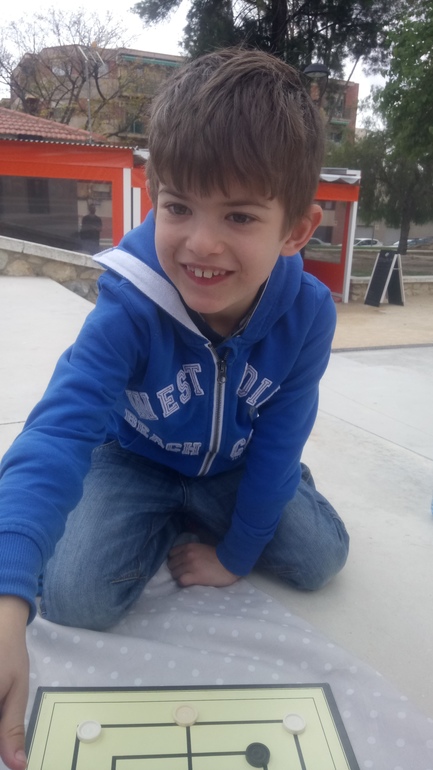 Поиграли в поддавки, шашки, Muehle (мельницу). Интересно, в каком возрасте уже сын меня будет обыгрывать сам, без подсказок??)))