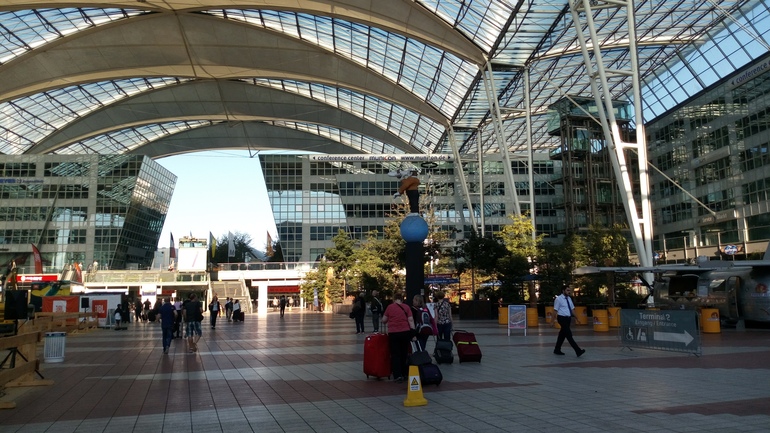 Аэропорт Мюнхена самый большой в Германии и достаточно запутанный. В центре терминалов большой двор под стеклянным куполом с трассой для горных велосипедов. А еще это единственный аэропорт, в котором можно заняться серфингом в специально оборудованном бассейне с волнами.