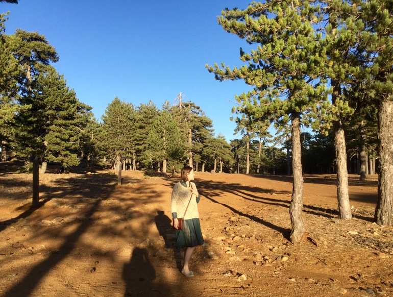 Ездили гулять выше в горы. Гуляли по лесу. Доехали до олимповсеой лыжни. Зимой обещают много снега. Может, покатаемся на лыжах. И на санках!