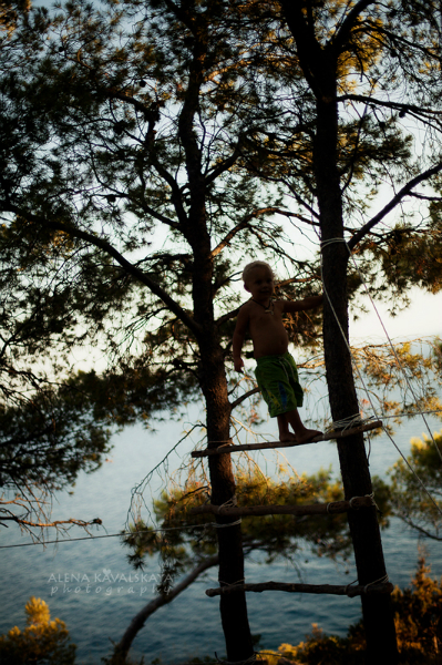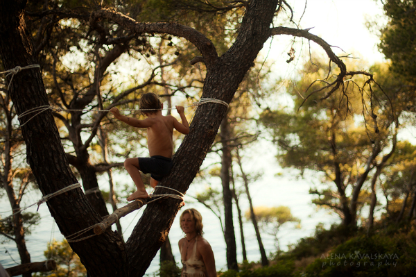Первое с чего начинается работа в этом семинаре-совместная жизнь))Жизнь в стае, все бытовые моменты, драки и взаимотношения детей, наши реакции, просто возможность увидеть себя и свое отражение со стороны и понять что тебе надо искоренять, как можно четче. Все человеческие изъяны, которые так сильно отделяют нас от Божественного. В догрузку идет постоянная работа в пространственном ракурсе, это дойти до места проведения через склоны-подъемы и обратно, ежедневные маршруты с грузом (мне очень помогают, но я каждый раз хожу вниз-вверх с боксом на плечах и с Егорчиком в руках, а еще есть коврик, ласты и т.д., очень помогает Артем загруженный по-максимому своим рюкзачком), фридайвинг, йога, детские нырялки. Интенсив и скорость что надо, полет нормальный!))) Мы много находимся в воде, а вода тут благодатная! Я только успеваю реагировать на разные режимы, мне и с Егором надо позаниматься и проследить, чтобы Артем работал, и пофотографировать всех и все это одновременно))) Спасибо окружающим людям, которые помогают и заботятся о Егорчике! СТолько внимания и заботы вокруг, люди учатся служить и делать что-то друг для друга, а не только взгляд внутрь себя. Место для семинара выбрали шикарное!!! МОе просто фантастика, у нас великолепный фридайвинг!Сегодня уже ходили по тросу! 18 метров, в самом низу очень холодно!!! А еще ребята построили и организовали просто потрясающую детскую спортивную площадку из веревок и палок!!!В такой сосновой рощице, с шикарнейшим видом оттуда на море, горы, остров! Дети ходят по веревкам, лестницам, работают и смотрят на такие красоты! Развиваем чувство прекрасного, любовь к миру и красоте вокруг! Я очень рада, что мы здесь! Спасибо!