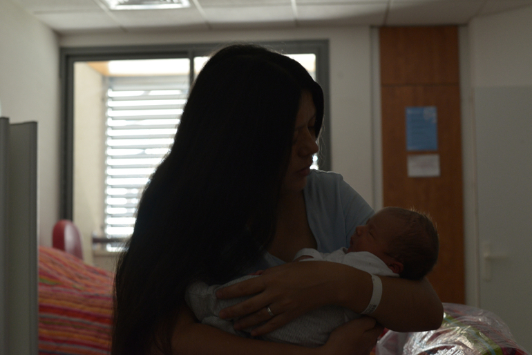Схватки я чувствовала хорошо, но не до дикой боли. Через какое-то время появилось желание сходить в туалет! Очень испугалась, что вдруг, пардон, обкакаюсь )))) Пришла акушерка, я ей сказала….. она сразу посмотрела, и говорит, мол, ребенок уже выходит, сейчас позову коллегу и будем роды принимать! Мы с мужем реально не ожидали, что уже так быстро…..Минут через 10 они пришли, две молоденькие акушерки; я еще подумала, как они вдвоем только роды примут? В первый раз, с Эваном, вокруг меня 5 акушерок бегало……