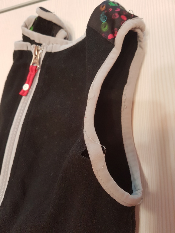 Брюки с флисовым жилетом. Есть небольшие дефекты (на фото) потёртости с внутренней стороны брюк + пару см отпоролся от брюк жилет + окантовка.