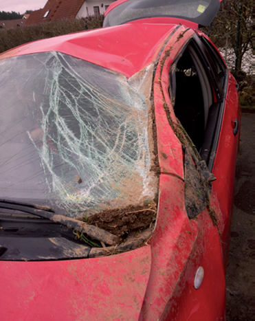 «Из-за скользкой, обледенелой дороги, Стефани С (Бавария) не справилась с управлением автомобилем и на скорости 80 км\час вылетела на обочину. Зацепившись колесом за бровку обочены несколько раз перевернулась и остановилась в поле через 15 метров