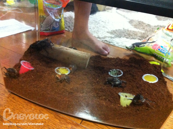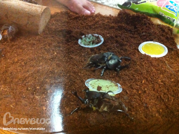 животныеДобрый дедушка нашел у себя в лесу личинки жуков, по японски кабутомущи, по русски не знаю как, наверное, носорог, т.к. рог один у жука. Прислал он нам их почтой, вот они все уже вылупились. Сегодня мы купили для них большую коробку, т.к. их 11 штук! корм, земельку. Они зарылись в землю и звуки издают )))), вообще интересно за ними наблюдать.
