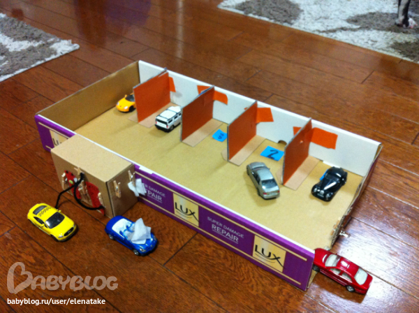творческий подход! возьму на заметку.У самой сын любит гаражи из коробок делать)))
