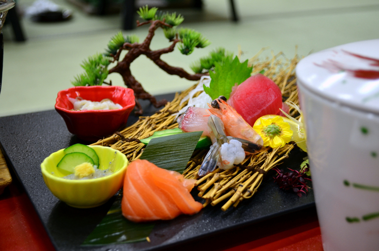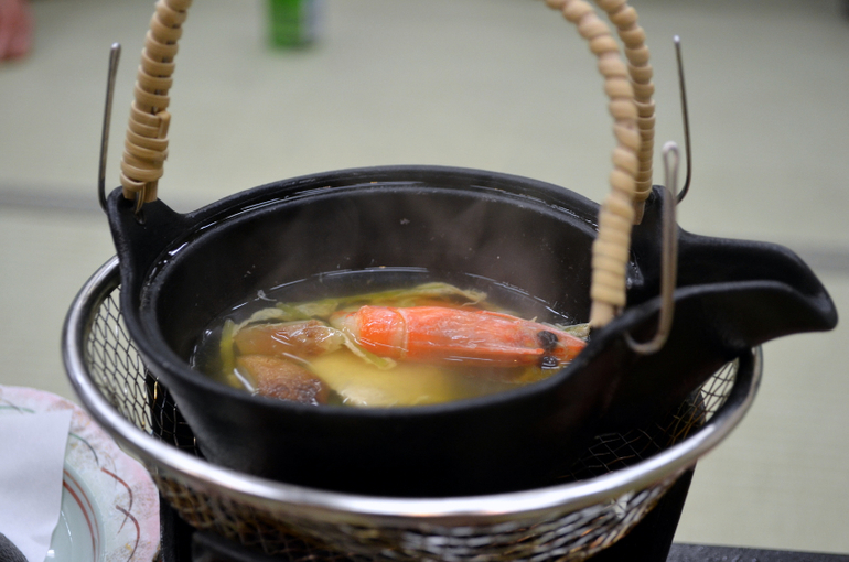 а это мы вышли к ужину, Тогецу уже уснул. Японцы порадовали нас шедеврами из морепродуктов, но, если честно, я предпочитаю мясо.