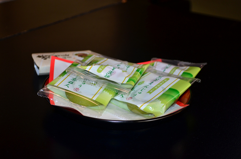 В отеле на столе нас ждали вот такие печеньки с зеленым чаем, местная достопримечательность.