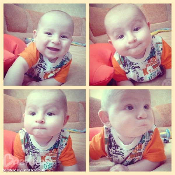 умеем много - сидит уверенно , садится с полулежа и когда на четвереньках стоит то можнт попу посадить на бок и сам сесть