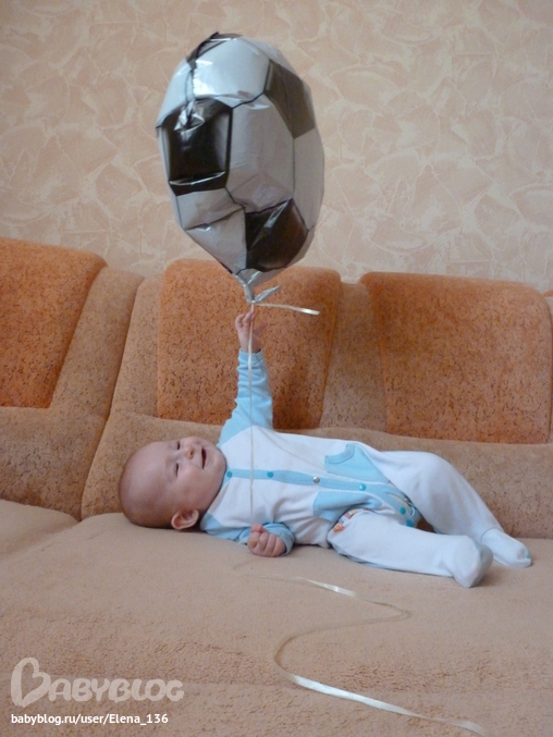 и еще - купили мы тут недавно Кирюхе шарик надувой забавы ради - дома было шоу. что Кирюха с ним не делал только . особенно смешно было когда шарик был у потолка а Кирюха долго лежал на спине , смотрел на шарик и бубнил что то . и звал его- рукой по полу хлопал) ))