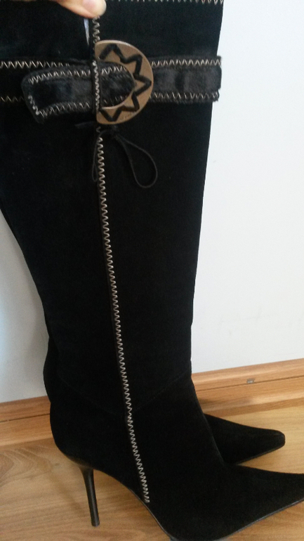 Замшевые сапоги размер 10 цвет черный, состояние идеальное, одевала несколько раз, фото не получается сделать в реале отличное состояние. Подойдут на размер 39-39,5.