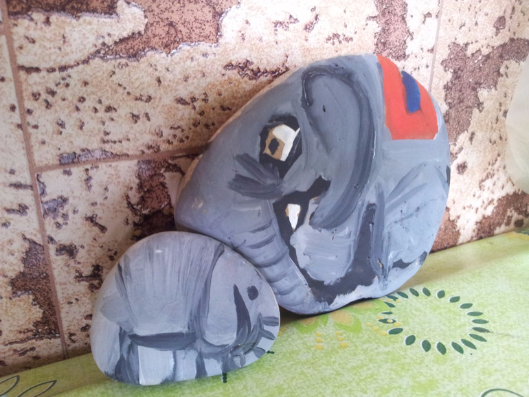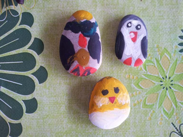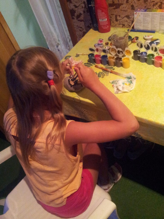 творчество сынулиПару вечеров выдалось дождливыми и,набрав камней с ровной поверхностью,мы уселись рисовать.