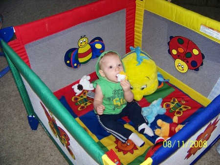У нас и манеж, который на кухне стоит, купили в 2мес. Можно кушать готовить (не надо бегать в комнату), можно просто спокойно покушать))) Развесили много игрушек и ребенок доволен