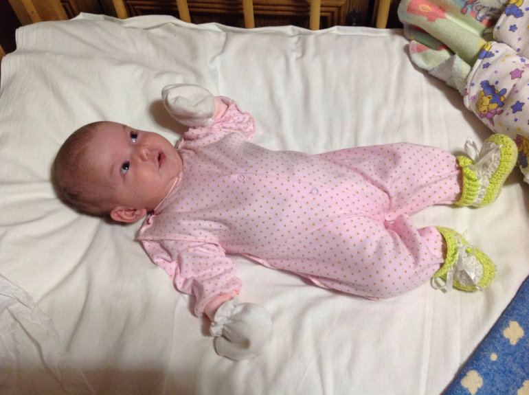 Кстати, Милашка уже хорошо голову держит :-) Устает быстро, но все-таки держит.