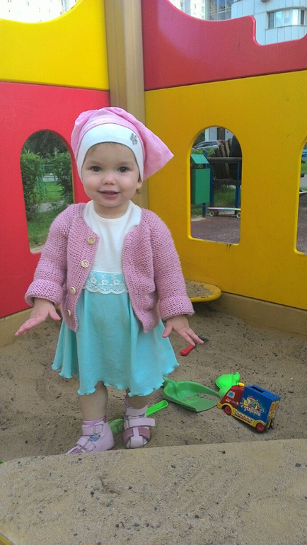 К отлету сестры закончила для нее пляжное платье, а для доченьки связала теплый жакетик