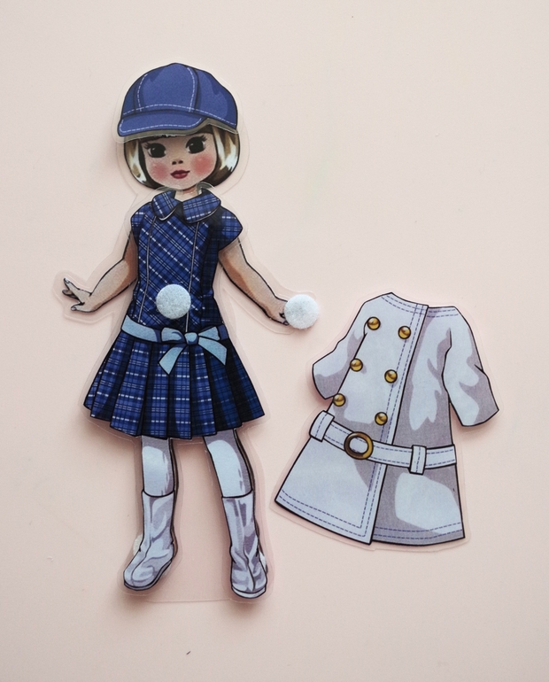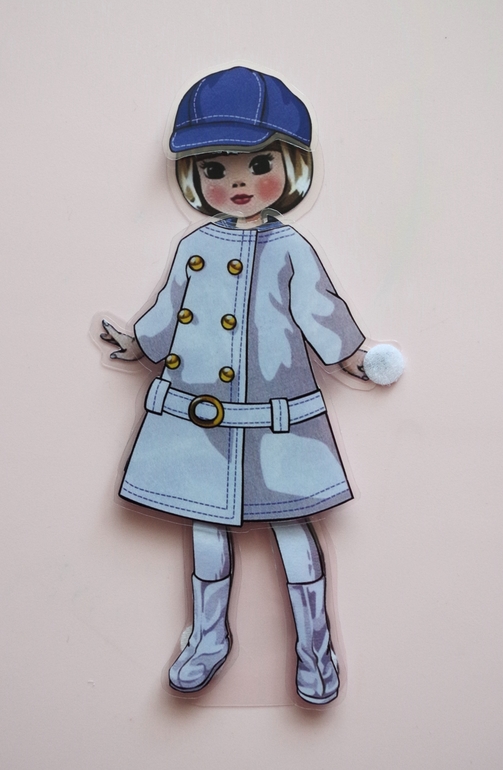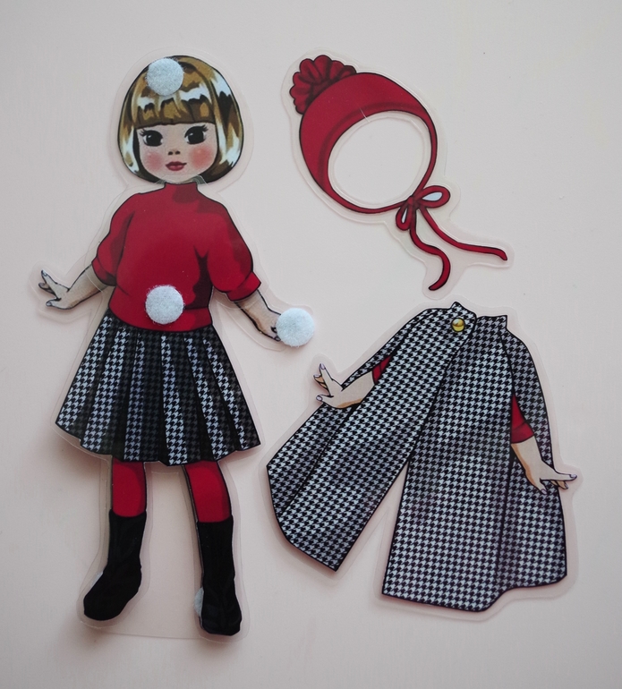 Бумажные куколки и их гардероб найдены на просторах мировой сети, не могу назвать автора, гардероб нашла на нескольких ресурсах, в общем, с миру по нитке. Куколка-девочка и её одежда распечатаны на фото бумаге, вырезаны и заламинированы. На куколку на соответствующие места приклеены самоклеющиеся круглые липучки с ворсистой поверхностью. На одежду - с колючей. Липучки брала здесь.