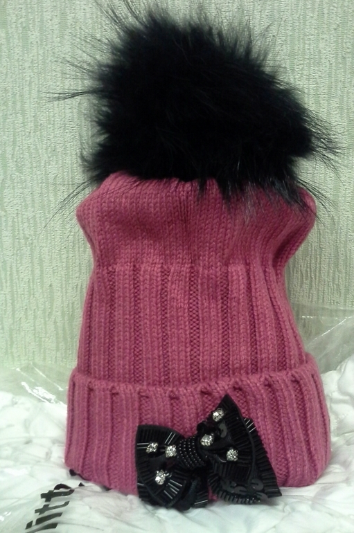 10.шапка с пумпоном,cтразами и бантиком