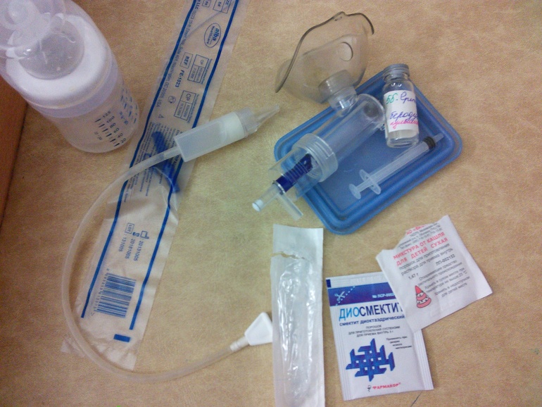 Но зато мы лечимся по-настоящему: трижды ингаляции , два раза микстурка, 1 раз в день порция самомеда ( один раз укол антибиотика сделала, потом поставили лекарство помягче), а перед ночным сном полная чистка носоглотки - выкачивают всю бяку элекрическим соплеотсосом с длинным катетером. Дважды суспенция диосмектита для микрофлоры. И анализы, анализы , анализы - кровь, моча, биохимия, экг, все-все смотрят. Каждый час кто-то да зайдет и проверит ,как у нас дела (как спит малыш, как ест, как носик, сколько раз покакал и т.д.)