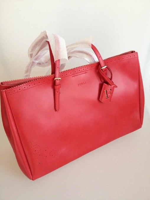 Есть ли эта сумка Ferre красно-коралловая.Кожа. Р-р 41х31х12. Длина ручек 58 см.