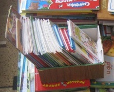 Имеют свойство расползаться при горизонтальном и вертикальном хранении, поэтому я приспособила для них коробку. Очень удобно. Можно достать коробочку и покопаться в книжках, отыскивая самую нужную.