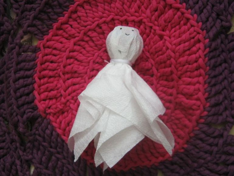 До украшений не добрались, хотя я и пыталась вырезать гирлянды. Сделала только такое привидение из чупа-чупса, а вручила и то на пару дней позже.
