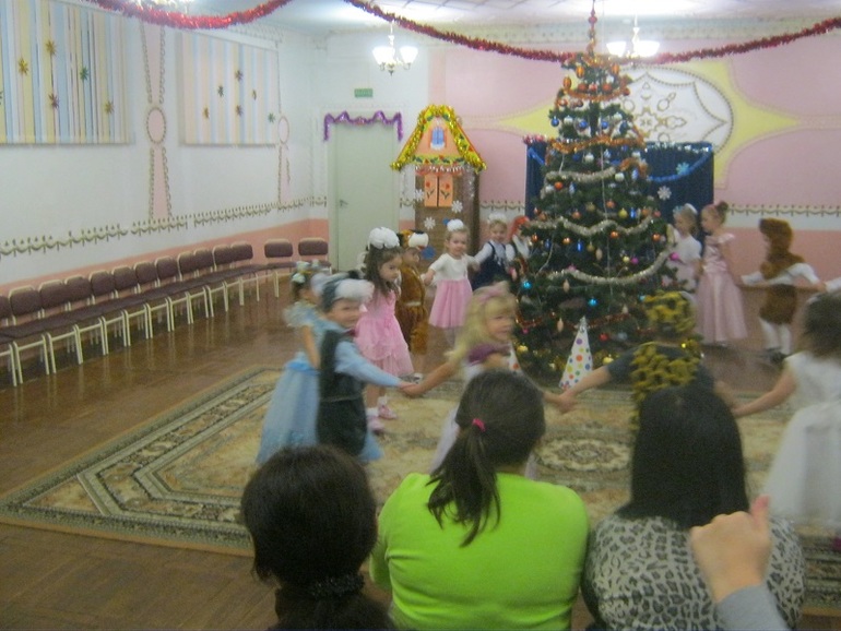 Были и хороводы, и игры с Дедом Морозом, и хитрая Лисичка приходила, и девочки танцевали танец куклы-неваляшки. «Мы милашки, куклы неваляшки…» И подарочки конфетные конечно тоже получили в конце )