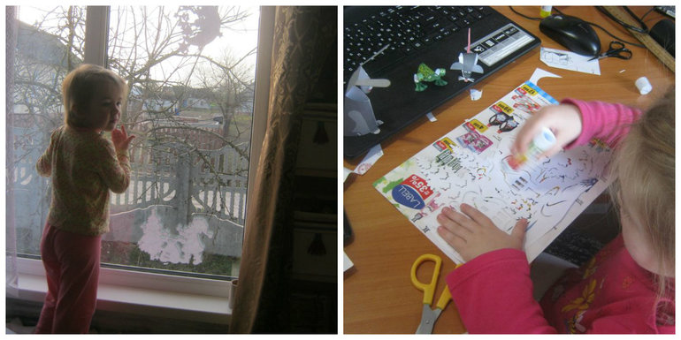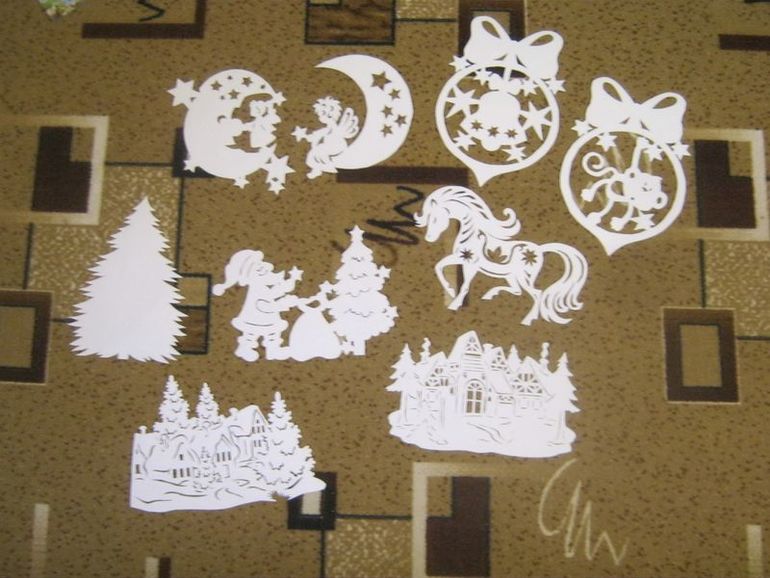 12. Вытинанки. В этом году я наконец-то их сделала, на обеде на работе вырезала и вырезала, украсили 2 окна.