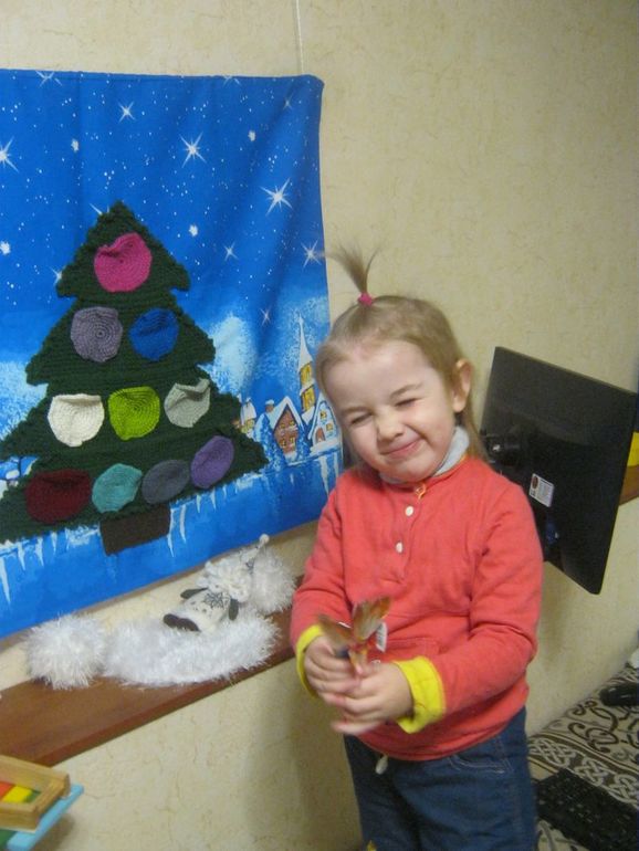 Календарь конечно прошлогодний, ну не один же раз я его вязала. Подарочков было 10: 2 поника, выдра, хорек, бегемотик, киндер-сюрприз, мини-скейт для пальчиков, петушок на палочке, кошелек в виде клубнички и что-то еще.