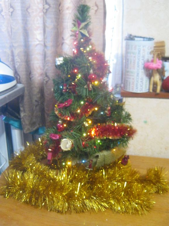 13. Нарядить ёлку. Ёлка такая, другой пока нету, зато новая длинная гирлянда, которой украшена еще и труба и вечером очень красиво сверкают огоньки.