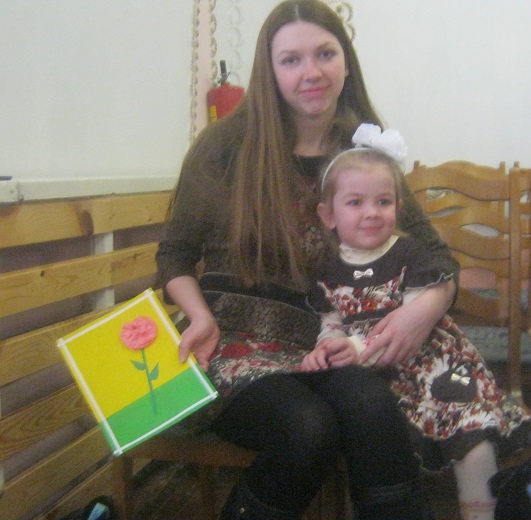 Полина вручила типа подарок открытку из цветной бумаги на которой цветочек. Дочка честно призналась, что воспитательница делала, но все равно приятно)