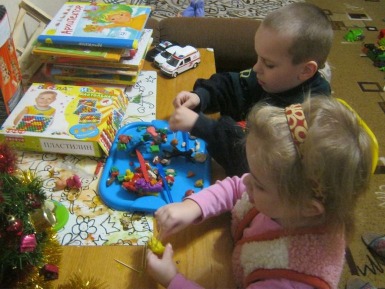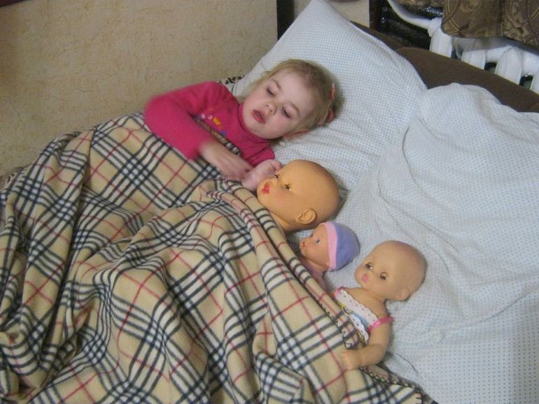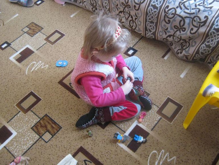 Бывают периоды что играет сама (но часто с Антоном). Может поиграть в куклы, разыгрывает какие-то сценки.