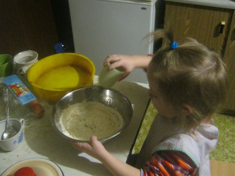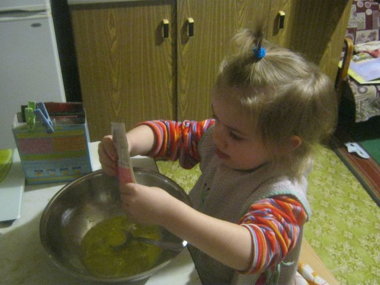 Полина смешивала ингредиенты, понятное дело, ела все что попалось под руку)