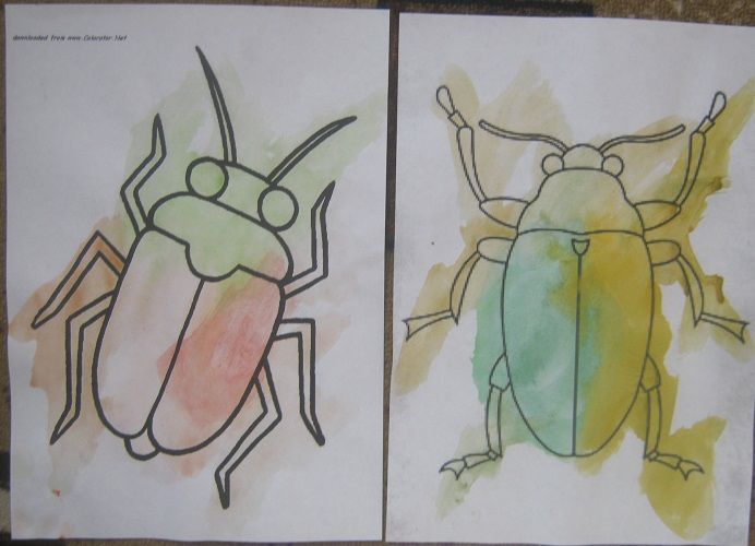 8. Творчество у нас заключилось в разрисовывании раскрасок с жуками и лепке этого самого жука. Ну продукт лепки не буду показывать, просто мама Катя слепила жука, а Полина натыкала ему ножки из спичек.