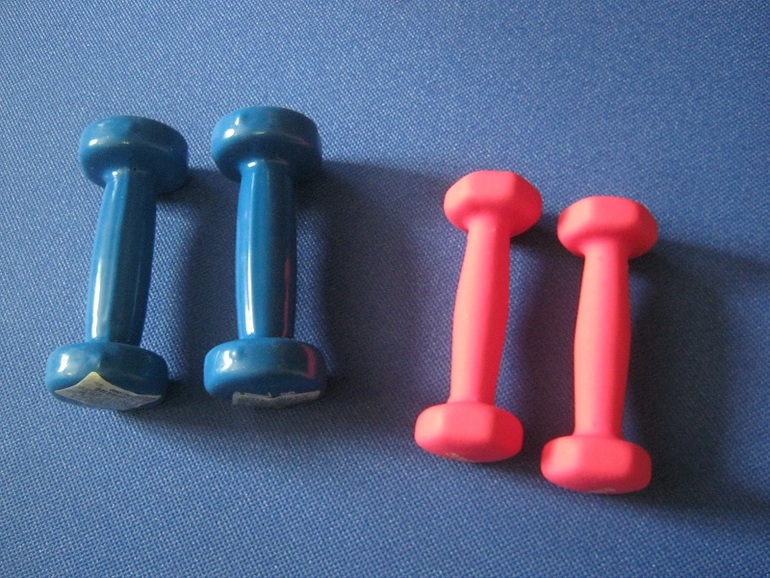 Ну не знаю, может я и не правильно сделала, но вчера мы пошли в спортивный магазин и выбрали Полине гантели (а мне коврик). Это можно сказать вынужденная мера, потому что выслушивать каждый вечер хныканье про то, что ей нужны гантели просто мне надоело. Сначала я ей вырезала из картона, хватило на один раз, потом ей папа сделал из болтов, такие хорошенькие, но для фото куда-то запропастились. На пару разов тоже хватило, а потом доча стала просить ей детские гантели. Ну вот мы и выбрали вполне себе девчачьи гантельки по 500 гр))