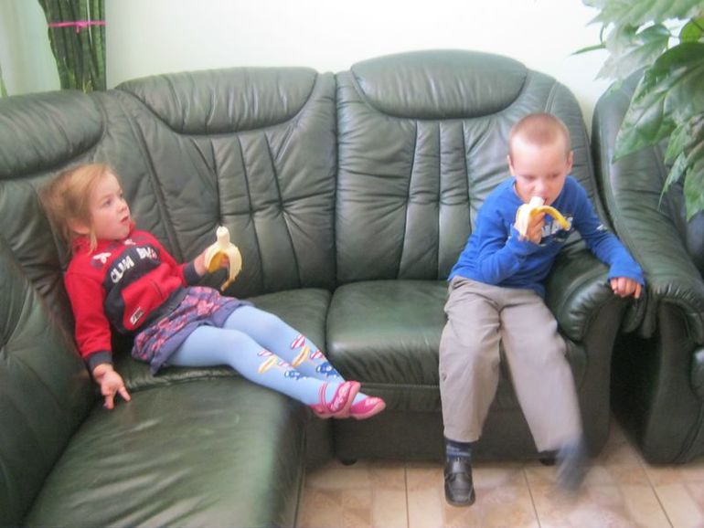 Отдых у нас был в химчистке, пока я сдавала пальто дети отдохнули и съели по банану.