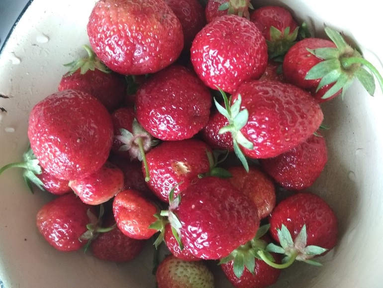 Напишу еще чем занимались другие члены семьи. Паша подготовил комнату к поклейке обоев (комната Антона), ездил в магазин за клеем, косил траву во дворе. Свекровь с подругой/родственницей/соседкой клеили обои несколько часов. Полина еще до 11 вышла гулять и только к 21 зашла домой. Еще в обед заскочила покушать. И еще ее угостили шоколадочкой, которую она с клубничкой поела прямо на улице.