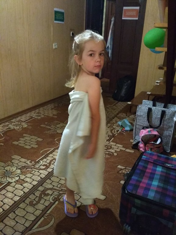Вообщем как-то так быстро день и прошел. Из душа выходит моя красотка) Маме так тяжеловато ее носить, почти 21 кг счастья)