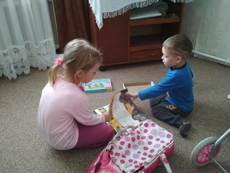 Утром в субботу у меня еще было уборочное настроение, так что я убирала. Вечером мы должны были ехать к родственникам, но планы поменялись, и к 12 приехала моя двоюродная сестра с сыном Ваней (3,8 г). Так что мы прекрасно провели пару часов, а дети наигрались.
