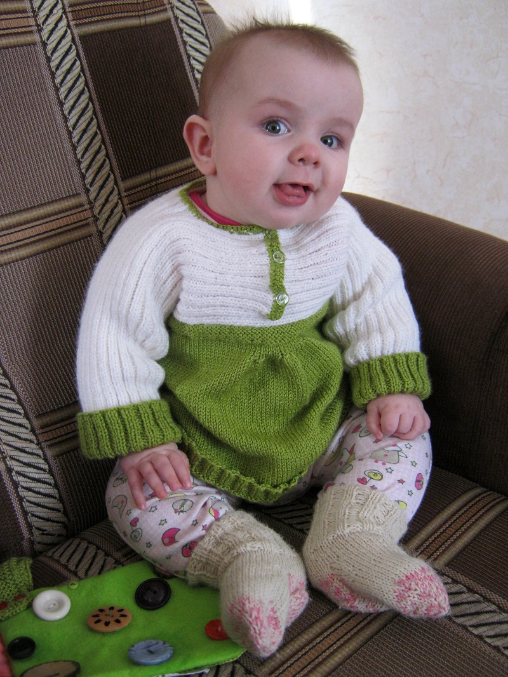 Встала на четвереньки! По-настоящему, на коленки и живот подтянула. Или встанет и сразу же опустится или подольше постоит, раскачиваясь. И много-много раз становилась. Я толком и не сфоткала, она на фотик отвлекается(