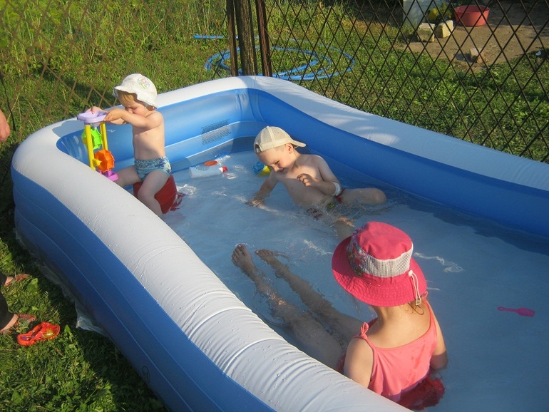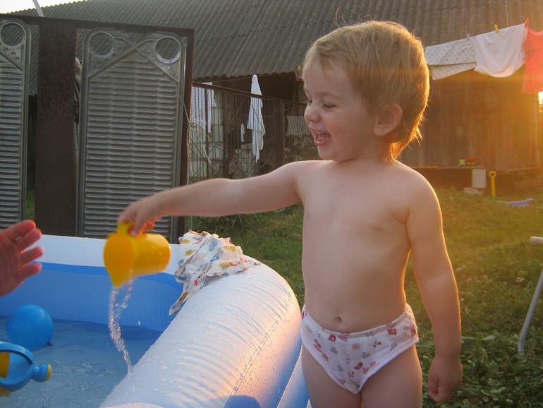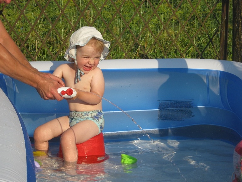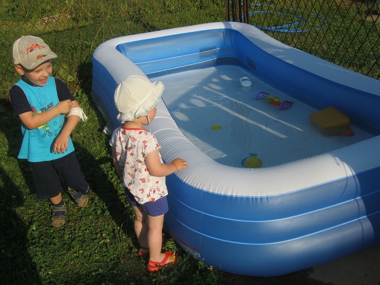 Но Полина потом сильно каскапризничалась и ее пришлось унести. Поэтому плескались в воде Алина с Антоном, а Полина смотрела Винни Пуха в свое удовольствие)