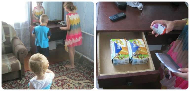 После еды, для детей был Квест. Но сказать начистоту, то заинтересовал он Алину, а Антона и Полину практически нет((( Она одна носилась по всему дому с карточками мест и искала, а дети как бы занимались своими делами. Напомню, что детям было 8, 4 и 2 года)