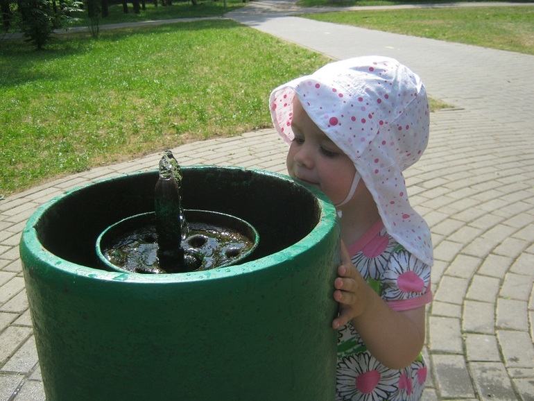 Уже совсем вечером мы опять отправились к бассейну. Зайти Полина отказалась, но нашла для себя веселое занятие.