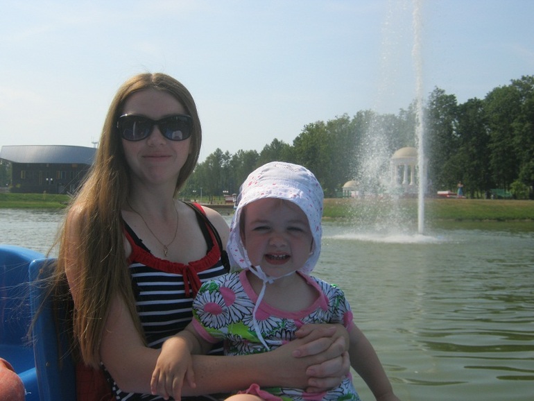 Думала я конечно одеть свое новое платье в горошек, но было так жарко, что пришлось одеть голубое простое платье. Теперь мы были с Полиной в одной цветовой гамме))