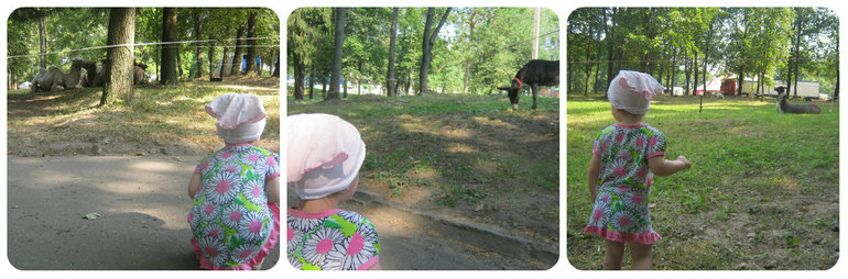 Еще раз посмотрели верблюдов и ламу с осликом.